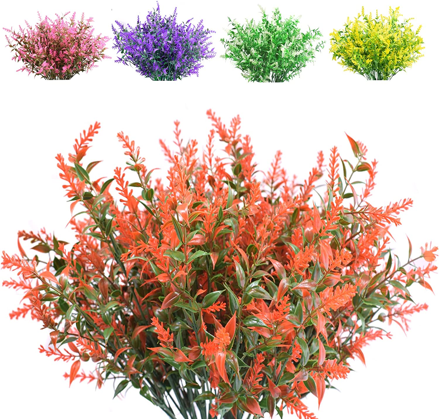 Boic 10 Bunches Artificial Lavender Flowers,Artificial Flowers Outdoor Fake Flowers Plastic Artificial Flowers Outdoor Use for Indoor Outdoor Home Office Garden Decor-Orange
